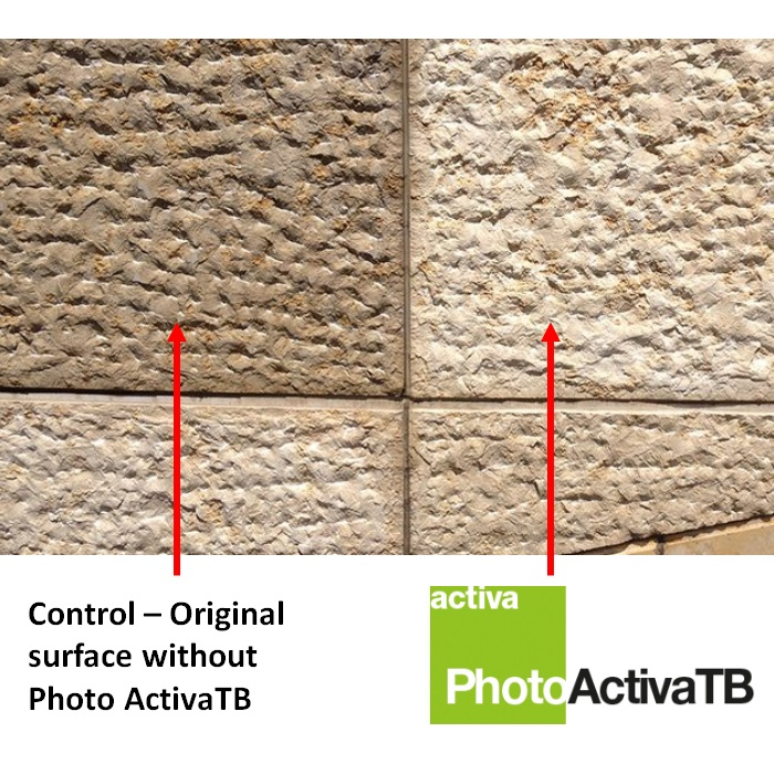*Photocatalysis requires light energy to be activated. Natural light, fluorescent, or incandescent bulbs are, in that order, suitable to activate the surfaces. Black light or LED lights emitting in the range of visible violet (380 nm) is optimal for a perfect activation.